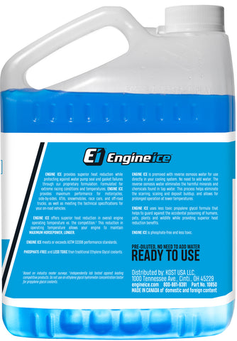 Perfect for use in almost every vehicle over all types of terrain. Engine Ice is easy to use in the convenient 1/2 gallon bottle. Pre-mixed to save you time, choose Engine Ice when you make your next coolant change.